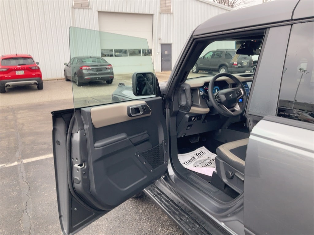 FULLY DETAILED, 2-Door Intelligent Access w/Lock/Unlock, 4-Wheel Disc Brakes, 4.46 Axle Ratio, 7 Speakers, ABS brakes, Air Conditioning, Alloy wheels, AM/FM radio: SiriusXM with 360L, AM/FM Stereo, Ambient Footwell Lighting, Auto High-Beam Headlamps, Auto High-beam Headlights, BLIS Blind Spot Information System, Brake assist, Carbonized Gray Molded-In-Color Hard Top, Cloth Bucket Seats, Compass, Connected Navigation, Delay-off headlights, Dr & Pass Illuminated Sliding Visor Vanity Mirrors, Driver door bin, Driver vanity mirror, Dual front impact airbags, Dual front side impact airbags, Dual Smart Charging USB Ports, Dual-Zone Electronic Automatic Temperature Control, Electronic Stability Control, Emergency communication system: 911 Assist, Equipment Group 222A Mid Package, Exterior Parking Camera Rear, Front anti-roll bar, Front Bucket Seats, Front Center Armrest, Front reading lights, Front Row Heated Seats, Front wheel independent suspension, Fully automatic headlights, Hard Top Sound Deadening Headliner, Heated door mirrors, Illuminated entry, Integrated roll-over protection, Lane-Keeping System, Leather Shift Knob, Low tire pressure warning, Occupant sensing airbag, Outside temperature display, Overhead airbag, Overhead console, Panic alarm, Passenger door bin, Passenger vanity mirror, Power door mirrors, Power Outlet - Back Side of Center Floor Console, Power steering, Power windows, Pre-Collision Assist w/Automatic Emergency Braking, Radio data system, Rear Parking Sensors, Rear-View Camera, Rear-Window Defroster & Washer, Remote keyless entry, Security system, Side Step, SiriusXM w/360L, Speed control, Split folding rear seat, Steering wheel mounted audio controls, SYNC 4, Tachometer, Telescoping steering wheel, Tilt steering wheel, Traction control, Trip computer, Variably intermittent wipers, Wheels: 17" Carbonized Gray-Painted Aluminum.