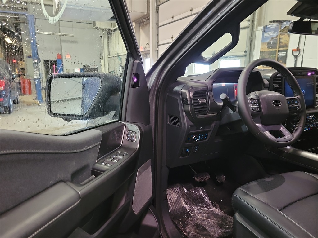 4WD, 4-Wheel Disc Brakes, 8 Speakers, ABS brakes, ActiveX Trimmed Bucket Seats, Air Conditioning, Alloy wheels, AM/FM radio: SiriusXM with 360L, Auto High-beam Headlights, Auto-dimming door mirrors, Auto-dimming Rear-View mirror, Automatic temperature control, Black Exterior Badging, Black Grille, Black Taillamp Bezels, Body-Color Front and Rear Bumpers, Brake assist, Bumpers: chrome, Chrome wheels, Compass, Dark Interior Appliques, Delay-off headlights, Driver door bin, Driver vanity mirror, Dual front impact airbags, Dual front side impact airbags, Electronic Stability Control, Emergency communication system: SYNC 4 911 Assist, Equipment Group 501A Mid, Ford Connectivity Package (1-Year Included), Front anti-roll bar, Front Bucket Seats, Front Center Armrest, Front dual zone A/C, Front fog lights, Front reading lights, Front wheel independent suspension, Fully automatic headlights, Garage door transmitter, Gray Box Side Decal, Heated door mirrors, Heated front seats, Heated steering wheel, Illuminated Driver and Passenger Visors, Illuminated entry, Integrated Trailer Brake Controller, Internet access capable: 5G Modem - Ford Connectivity Package, Lariat Black Appearance Package, Low tire pressure warning, Matte Black Tailgate F-150 Decal, Memory seat, Navigation system: Connected Navigation, Occupant sensing airbag, Outside temperature display, Overhead airbag, Overhead console, Panic alarm, Passenger door bin, Passenger vanity mirror, Power door mirrors, Power driver seat, Power passenger seat, Power steering, Power windows, Power-Adjustable Pedals with Memory, Power-Sliding Rear Window, Radio data system, Radio: B&O Sound System by Bang and Olufsen, Rain sensing wipers, Rear reading lights, Rear seat center armrest, Rear step bumper, Rear window defroster, Remote keyless entry, Security system, Speed control, Split folding rear seat, Steering wheel mounted audio controls, SYNC 4 with Enhanced Voice Recognition, Tachometer, Telescoping steering wheel, Tilt steering wheel, Tow/Haul Package, Traction control, Trip computer, Turn signal indicator mirrors, Variably intermittent wipers, Ventilated front seats, Wheels: 18" Chrome-Like PVD, Wheels: 20" Chrome-Like PVD, 4WD.