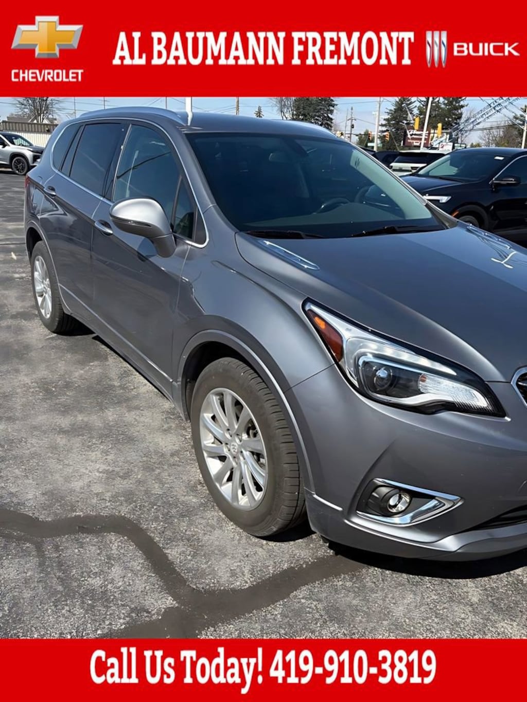 Recent Arrival! Odometer is 16090 miles below market average! CARFAX One-Owner. Clean CARFAX.Satin Steel Metallic 2020 Buick Envision Essence AWD ESSENCE 4D Sport Utility 2.5L 4-Cylinder DGI DOHC VVT 6-Speed Automatic AWDONE OWNER CLEAN CARFAX!!Car shopping is sometimes inconvenient and stressful, and we want to take the hassle out of this all-too-common experience. If youâre interested in more convenience, less frustration and a process that works efficiently to meet your needs as a customer. Al BAUMANN AUTO GROUP. The Best Price Up Front Cash Offers For Any Trade-In Multiple Financing Quotes In Minutes A Team Of Dedicated Salespeople.CALL,419-332-8236 or {1-866-330-3601}, Preferred Equipment Group 1SL, 18 10-Spoke Polished Aluminum Wheels, 3.50 Final Drive Axle Ratio, 4-Wheel Disc Brakes, 6 Speakers, 6-Speaker Audio System Feature, ABS brakes, Air Conditioning, Alloy wheels, AM/FM radio: SiriusXM, Apple CarPlay/Android Auto, Auto-dimming door mirrors, Auto-dimming Rear-View mirror, Automatic temperature control, Brake assist, Bumpers: body-color, Compass, Delay-off headlights, Driver 8-Way Power Seat Adjuster, Driver door bin, Driver vanity mirror, Dual front impact airbags, Dual front side impact airbags, Dual USB Charging-Only Ports, Dual USB Ports w/Single Auxiliary Input Jack, Electronic Stability Control, Emergency communication system: OnStar and Buick connected services capable, Exterior Parking Camera Rear, Four wheel independent suspension, Front anti-roll bar, Front Bucket Seats, Front Center Armrest, Front dual zone A/C, Front fog lights, Front Passenger 8-Way Power Seat Adjuster, Front reading lights, Fully automatic headlights, Garage door transmitter, Heated door mirrors, Heated Driver & Front Passenger Seats, Heated front seats, Heated rear seats, Heated steering wheel, High-Intensity Discharge Headlights, Illuminated entry, Knee airbag, Leather Shift Knob, Low tire pressure warning, Memory seat, Memory Settings, Occupant sensing airbag, Outside temperature display, Overhead airbag, Overhead console, Panic alarm, Passenger door bin, Passenger vanity mirror, Perforated Leather-Appointed Seat Trim, Power door mirrors, Power driver seat, Power Liftgate, Power passenger seat, Power steering, Power windows, Radio data system, Radio: Buick Infotainment System AM/FM Stereo, Rear air conditioning, Rear anti-roll bar, Rear reading lights, Rear seat center armrest, Rear side impact airbag, Rear window defroster, Rear window wiper, Remote keyless entry, Roof rack: rails only, Security system, SiriusXM Radio, Speed control, Speed-sensing steering, Split folding rear seat, Spoiler, Steering wheel mounted audio controls, Tachometer, Telescoping steering wheel, Tilt steering wheel, Traction control, Trip computer, Turn signal indicator mirrors, Variably intermittent wipers, Preferred Equipment Group 1SL.