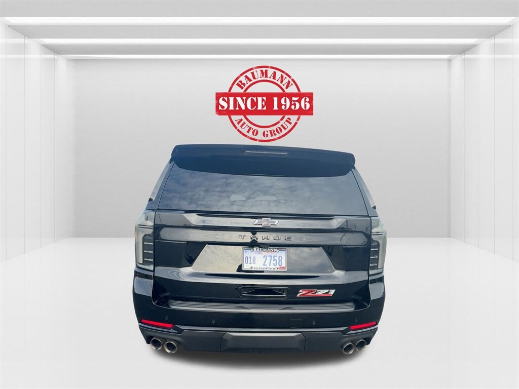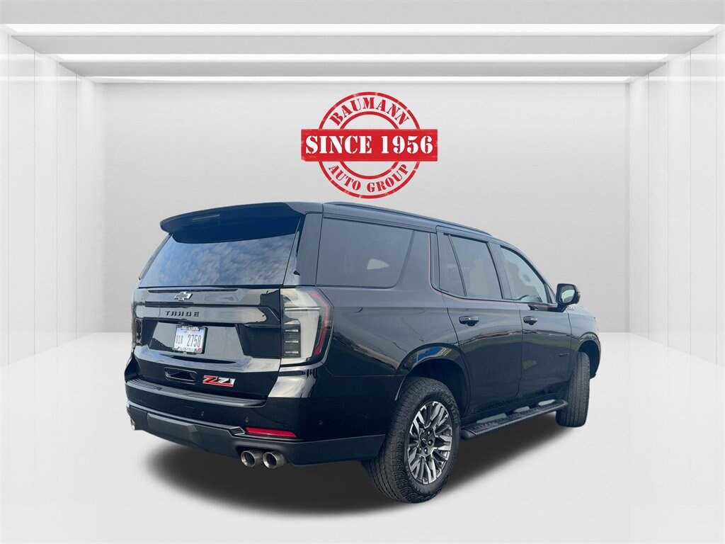 Recent Arrival! Priced below KBB Fair Purchase Price! Odometer is 7806 miles below market average! CARFAX One-Owner. Clean CARFAX.Black 2025 Chevrolet Tahoe Z71 4D Sport Utility EcoTec3 5.3L V8 10-Speed Automatic with Overdrive 4WD4WD, Black Leather, 1st and 2nd Row Color-Keyed Carpeted Floor Mats, 2-Speed Active Electronic AutoTrac Transfer Case, 3-Spoke Wrapped Steering Wheel, 3rd Row Manual 60/40 Split-Folding Bench Seats, Auto-Dimming Inside Rear-View Mirror, Black Tubular Assist Steps, Bright Front and Rear Door Sill Plates, Color-Keyed Carpeting Floor Covering, Dual Exhaust System, Dual-Pane Power Panoramic Sunroof, Floor Console with Storage Area, Front Bucket Seats, Front High-Approach Angle Fascia, Front LED Fog Lamps, Front Pedestrian and Bicyclist Braking, Frontal Driver and Outboard Passenger Airbags, Hill Descent Control, Memory Settings For Driver, Preferred Equipment Group 2Z7, Rear Power Liftgate, Red Horizontal-Mounted Recovery Hooks, Remote Start, SiriusXM with 360L Trial Subscription, Universal Home Remote, USB Ports, Wheels: 20 x 9 Bright Machined Aluminum, Wireless Phone Charging, Z71 Exterior Features, 1st and 2nd Rows All-Weather Floor Liners, 2-Way Power Driver Lumbar Seat Adjuster, 2-Way Power Front Passenger Lumbar Seat Adjuster, 2nd Row Power Release 60/40 Split-Folding Bench Seat, 3.23 Rear Axle Ratio, 3rd Row 60/40 Power-Folding Split-Bench Seat, 3rd Row All-Weather Floor Liners, 3rd row seats: split-bench, 4-Wheel Disc Brakes, 6 Speakers, 6-Speaker Audio System Feature, 8-Way Power Driver Seat Adjuster, 8-Way Power Front Passenger Seat Adjuster, ABS brakes, Advanced Trailering Package, Air Conditioning, All-Weather Cargo Mat, All-Weather Liner Protection Package, Alloy wheels, AM/FM radio: SiriusXM with 360L, Apple CarPlay/Android Auto, Auto High-beam Headlights, Auto-dimming Rear-View mirror, Automatic temperature control, Blind Zone Steering Assist with Trailering, Bose 10-Speaker Centerpoint Surround Audio System Feature, Brake assist, Bumpers: body-color, Comfort Package, Compass, Delay-off headlights, Driver door bin, Driver vanity mirror, Dual front impact airbags, Dual front side impact airbags, Electronic Stability Control, Emergency communication system: OnStar and Chevrolet connected services capable, Exterior Parking Camera Rear, Extra Capacity Cooling System, Four wheel independent suspension, Front anti-roll bar, Front Center Armrest, Front dual zone A/C, Front fog lights, Front reading lights, Fully automatic headlights, Garage door transmitter, Heated 2nd Row Outboard Seats, Heated door mirrors, Heated Driver and Front Passenger Seats, Heated front seats, Heated Steering Wheel, Hitch View with Pan/Zoom Image Adjustment, Illuminated entry, Integrated Trailer Brake Controller, Leather-Appointed Seat Trim, LED Headlamps with LED Daytime Running Lamps, LED Tail Lamps, Low tire pressure warning, Max Trailering Package, Memory seat, Memory Settings, Navigation system: Google built-in compatibility (select service plan required, terms and limitations apply), Occupant sensing airbag, Outside Heated Power-Adjustable Mirrors, Outside temperature display, Overhead airbag, Overhead console, Panic alarm, Passenger door bin, Passenger vanity mirror, Power door mirrors, Power driver seat, Power Liftgate, Power passenger seat, Power Release 2nd Row Bucket Seats, Power steering, Power windows, Premium audio system: Chevrolet Infotainment 3 Premium, Premium Smooth Ride Suspension, Radio data system, Radio: 17.7 Diagonal Advanced Color LCD Display, Rain sensing wipers, Rear air conditioning, Rear anti-roll bar, Rear reading lights, Rear seat center armrest, Rear window defroster, Rear window wiper, Remote keyless entry, Security system, Smart Trailer Integration Indicator, Speed control, Speed-sensing steering, Split folding rear seat, Spoiler, Steering wheel mounted audio controls, Tachometer, Telescoping steering wheel, Tilt steering wheel, Traction control, Trip computer, Var